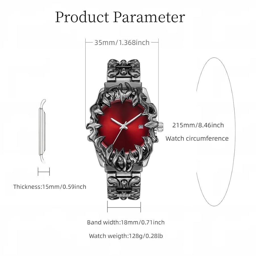يعكس الميناء المستوحى من اللهب ضوءًا جميلًا في الضوء المنخفض، مما يجعله مثاليًا للارتداء في المساء.